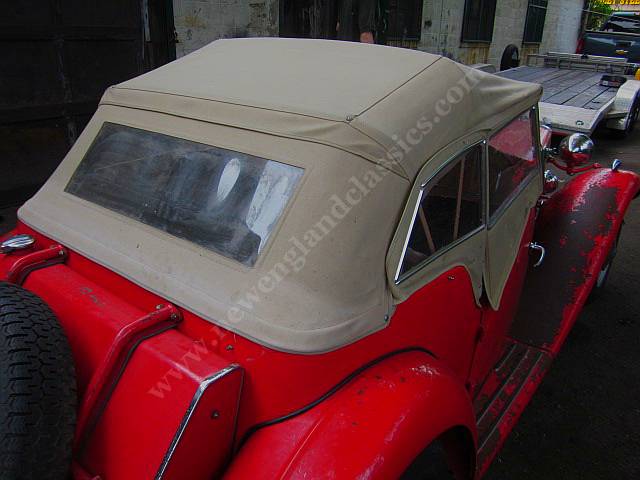 Body is excellent and in original paint. Granted, the paint is flaking off in many spots BUT with original paint, no sign of ANY plastic filler (that is, unlike the bulk of TDs in the world). Hence photos under the fenders, behind the doors and in front where many TDs have bubbles coming through plastic filler). So, flawed paint but a close to perfect body.