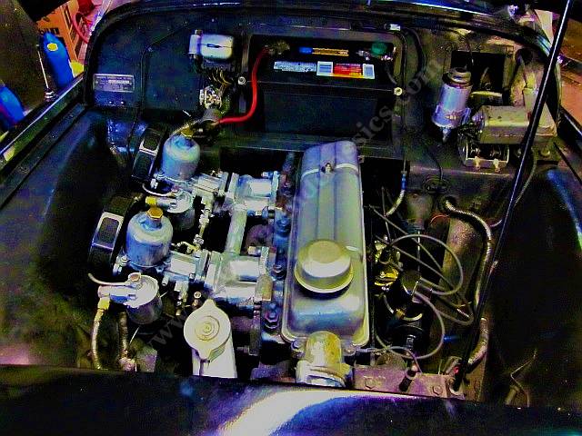 Its been converted to negative ground, has a modern digital stereo in the glove box, all in all, a dandy classic sports car with a certain cache due to its relative rarity, 110 mph performance, disc brakes and wire wheels. And even room for two small kids behind the seats as TR3s were designed to offer a 2+2 configuration.