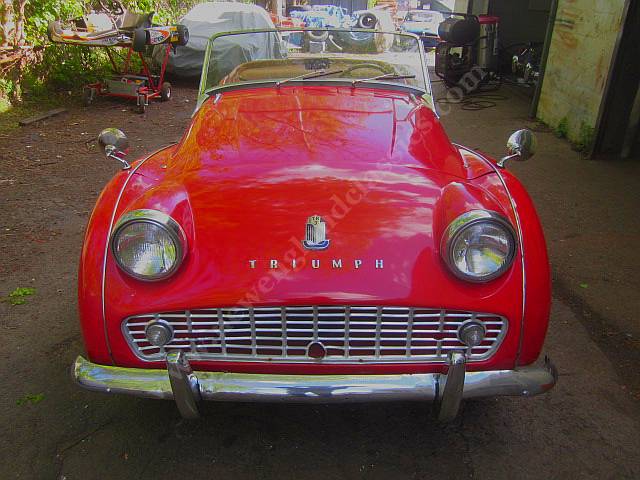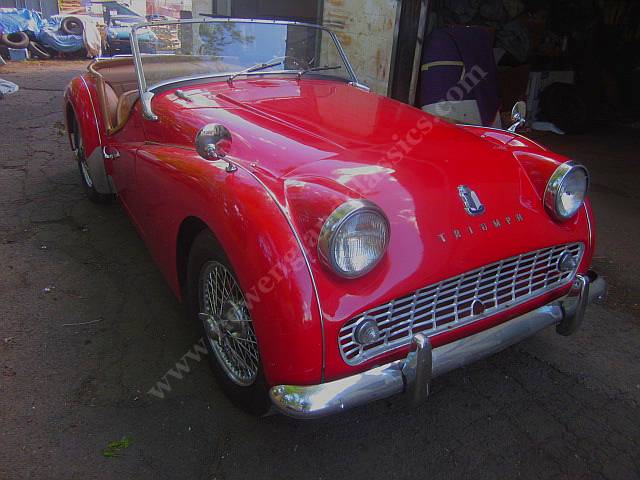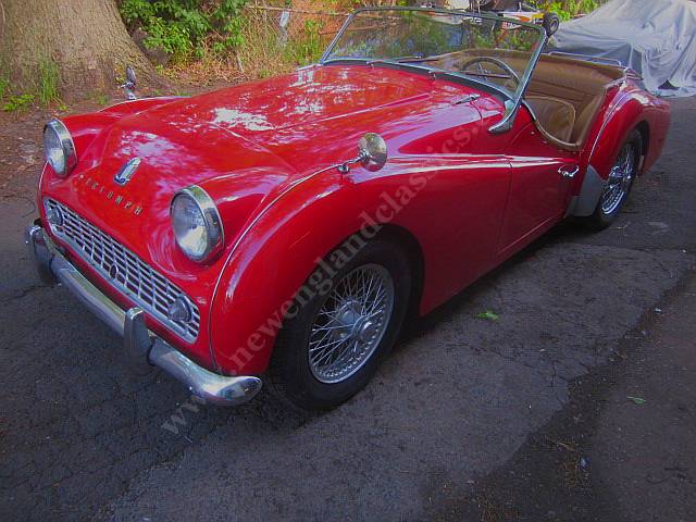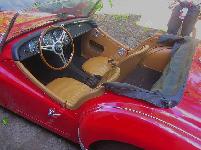 TR3s are very appealing classics, cut down doors, lots of gauges on the dash, wire wheels, 110 mph performance, disc brakes, everything one might want in an iconic country road sports car. And with the new weather equipment, one might even survive a downpour without getting drenched.