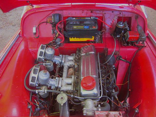 Just in........excellent body with very presentable older red paint, new top and side curtains, very good tan interior, wire wheels, steering box rebuilt, new shocks, mostly new front end work, very clean engine bay, 170 psi compression in every cylinder, no smoke, 65+psi oil pressure, excellent floors, very nice `ready to go for Summer` classic sports car.