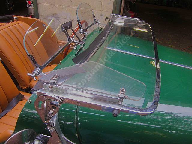 What else? Folding windshield brackets (last used on Morgans in early 1955 but occasionally retrofitted on later cars) and a pair of new Brooklands style racing screens. Neat `cause there is a wonderful feel of driving a classic British sports car with the windshield folded. (I know, NEVER have the windshield on my 1953 Morgan in the `up` position)