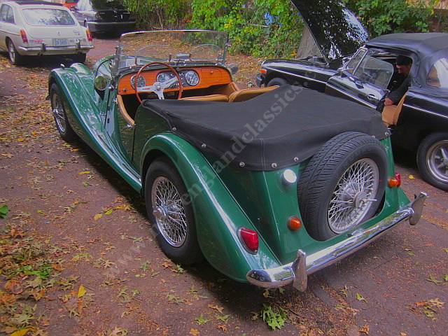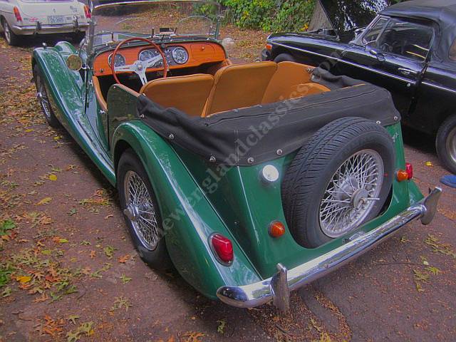 A four seater? Well, being that my first Morgan, back in 1974, was a 1959 four seater and the last one I purchased (two years ago) was a 1953 four seater, am quite fond of this relatively rare model. WhichI have read, constituted around 10% of production. Because, to me, a four seater is a wonderful classic car.....front seats are proper seats, springs (etc), adjustable fore and aft, even the seat back angle can be adjusted (on a two seater, the seat cushion sits on a wood board). AND a real back seat, for real adults, or (as I have found), lots of shopping, picnic items (chairs and folding tables with room for a good sized cooler) OR even two other people. Very handy, yet when the tonneau covers the back seat, in my mind, looks a bit like a 3 liter Bentley of the 1920s.