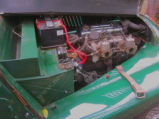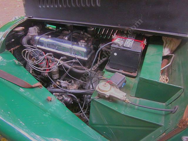 More? New seat belts front and rear, nicely tuned exhaust, period (and possibly original) wood steering wheel, radiator fins look great, brakes look like recently redone, 15` wire wheels with new radials, firewall painted to match the exterior (Morgan, of course, always carefully watching the pound sterling, just painted the firewalls in black), original heater, and (of course) a proper leather bonnet strap. Could very well be original.