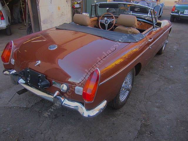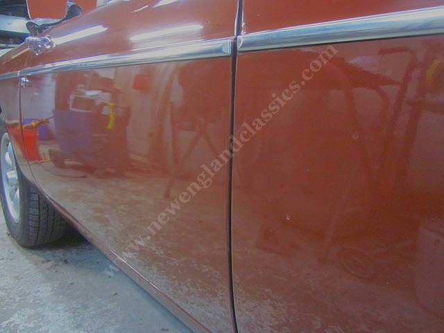 NOW..............work we just finished: lowered ride height to pre 1975 standards, rebushed front end and new springs, a complete professional chrome bumper conversion.....new Mk I grille, new bumpers and guards, new sheet metal, new lights, new brackets, NOW has the same exterior aesthetics of a pre 1968 MGB...the best looking of all. AND we also removed the side lights, welding over the holes, blending in matching paint, and the result............the best of all MGB worlds.