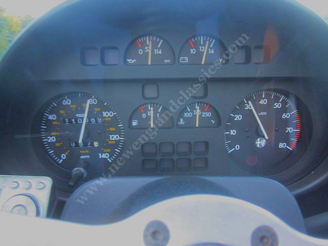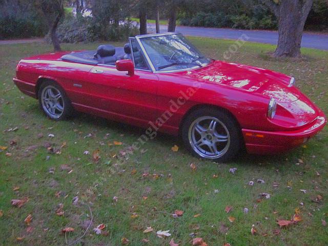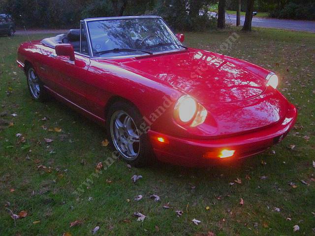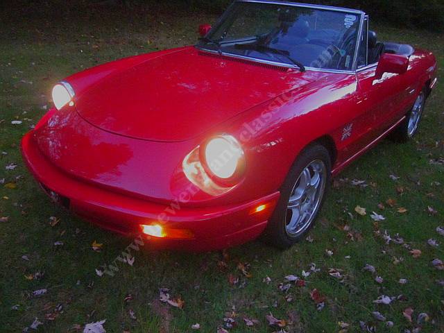 (and if you are unfamiliar with this model, it is the 4th, and last, generation of the original boat tailed Alfa of 1966-7. Had one, a few years ago, and tho` absolutely beautiful, was rather pokey in performance and dreadfully undergeared, very buzzy at even 60 or 70 mph. But this last of the line has very attractive lines and its all aluminum twin cam engine has higher lift camshafts, around 140+hp, efficient reliable fuel injection, five speed transmission, sophisticated suspension, four wheel power disc brakes, power windows, power steering, and even power mirrors....and amazingly, for someone who generally owns older British cars, EVERYTHING works)